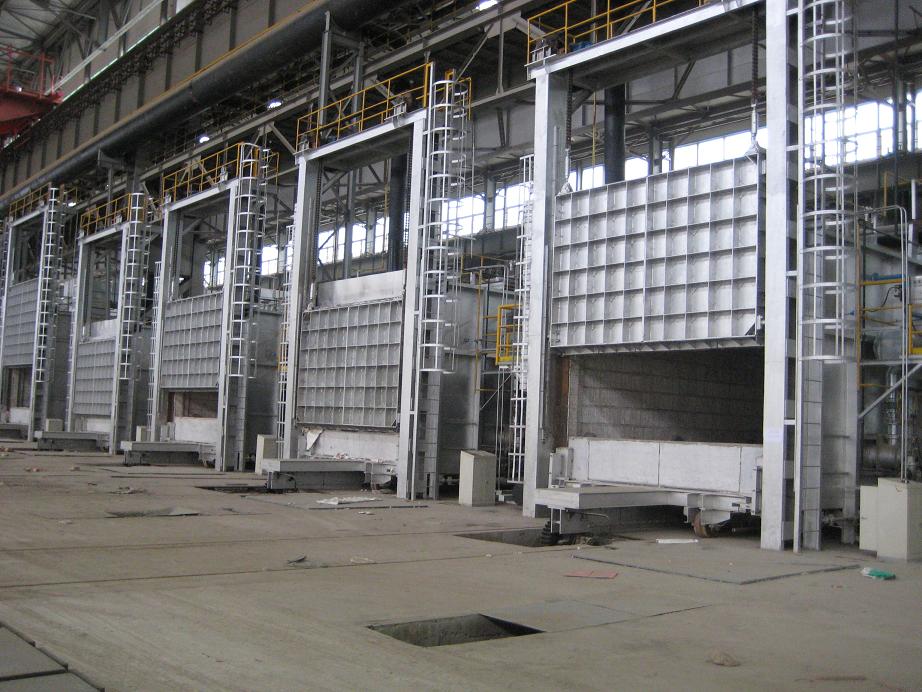 鋁合金淬火爐適用于對(duì)大、中型鋁合金產(chǎn)品零部件的固溶熱處理及時(shí)效處理,由加熱爐罩和移動(dòng)式底架組成的。方形(或圓形)爐罩頂裝有起重機(jī),通過鏈條和掛鉤可將料筐吊至爐膛。爐罩由型鋼支起,底部有氣動(dòng)(或電動(dòng))操作的爐門。位于爐罩下方的底架可沿軌道移動(dòng)、定位,底架上面載有淬火水槽和料筐等。